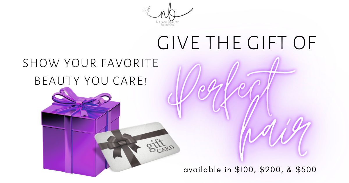 *Gift cards can only be redeemed via Nalani Beauty Collection, LLC. Gift Cards do not expire. Monetary amount purchased can be used towards purchase even if total exceeds value of gift card.